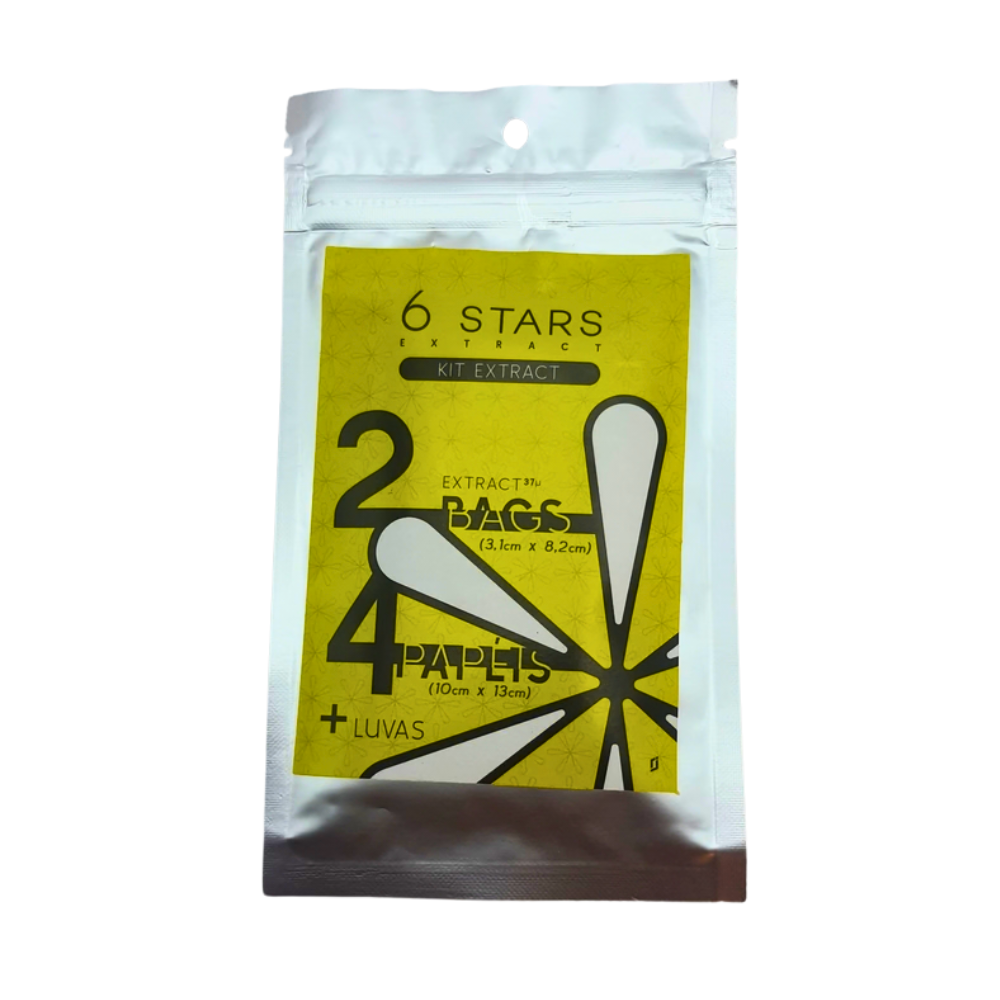 O Kit Extract 6 Stars é a solução completa, acessível e prática para quem deseja iniciar na extração de Rosin de alta qualidade usando apenas uma chapinha de cabelo. Desenvolvido para proporcionar extrações limpas e com máximo rendimento mesmo para iniciantes, o kit reúne todos os componentes essenciais: bags filtrantes de 37 mícrons em nylon food grade, papers siliconados antiaderentes, luvas de proteção e espátula de coleta — tudo em um único pacote compacto e econômico. Com o Kit Extract, basta ter uma chapinha em casa para produzir concentrados de altíssima pureza com técnica profissional e investimento mínimo.