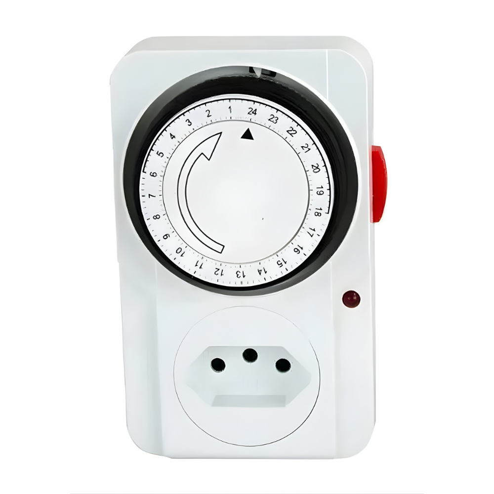 O Temporizador Analógico de Tomada Bivolt é um timer mecânico de fácil instalação e programação, desenvolvido para automatizar o acionamento e desligamento de qualquer equipamento elétrico conectado à tomada. Sem necessidade de aplicativos, configurações digitais ou conhecimento técnico, basta plugar na tomada, ajustar os pinos do mostrador e o ciclo diário estará programado. Ideal para cultivos indoor, o timer garante que painéis de LED, exaustores, ventiladores e sistemas de irrigação operem sempre nos horários certos — com precisão, repetição automática e total independência do cultivador.